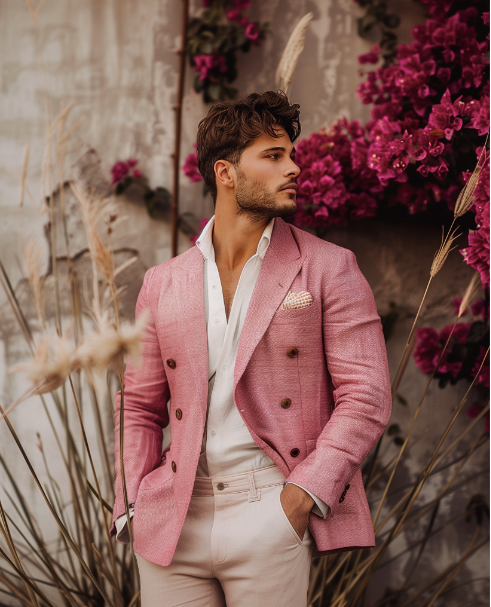 Let’s be clear—pink is a color that demands attention. When a man dons pink, whether it’s a shirt, jacket, or a full pink suit for men, he’s showcasing his confidence. It takes a certain level of self-assurance to wear a color that was once deemed “off-limits,” and that’s precisely why men can wear pink and should wear it often.